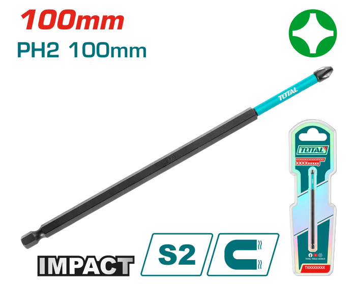 لقمه سن مفك صليبة PH2 طول 10 سم توتال TACIM71PH2100