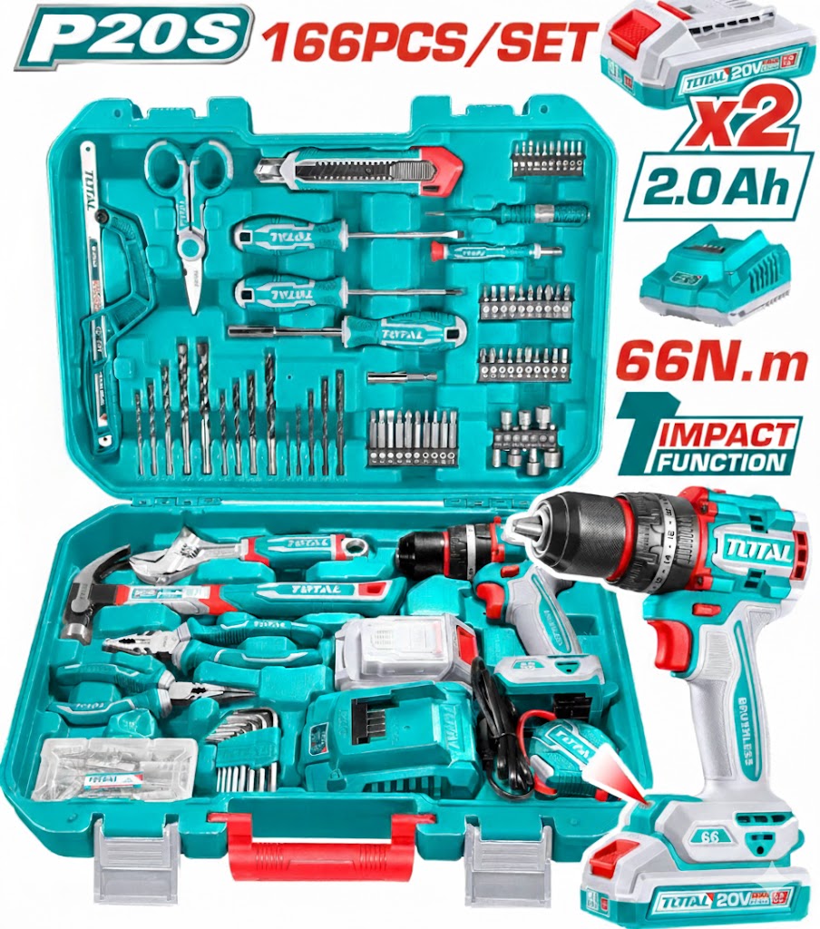 شنطه 166 قطعه شنيور 20 فولت 66 نيوتن دقاق + 2 بطاريه 2 امبير توتال THKTHP116621