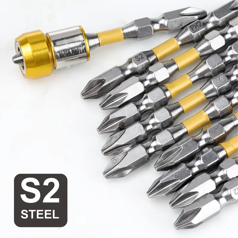 Material: Made of high-quality S2 steel, a type of impact-resistant and high-torque steel to ensure the bit head doesn’t wear down quickly.