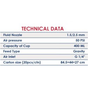 مسدس رش دهانات دوكو بالهواء مقلوب APT بنتة بلاستك 600 مم 1.6 مم AB-17G