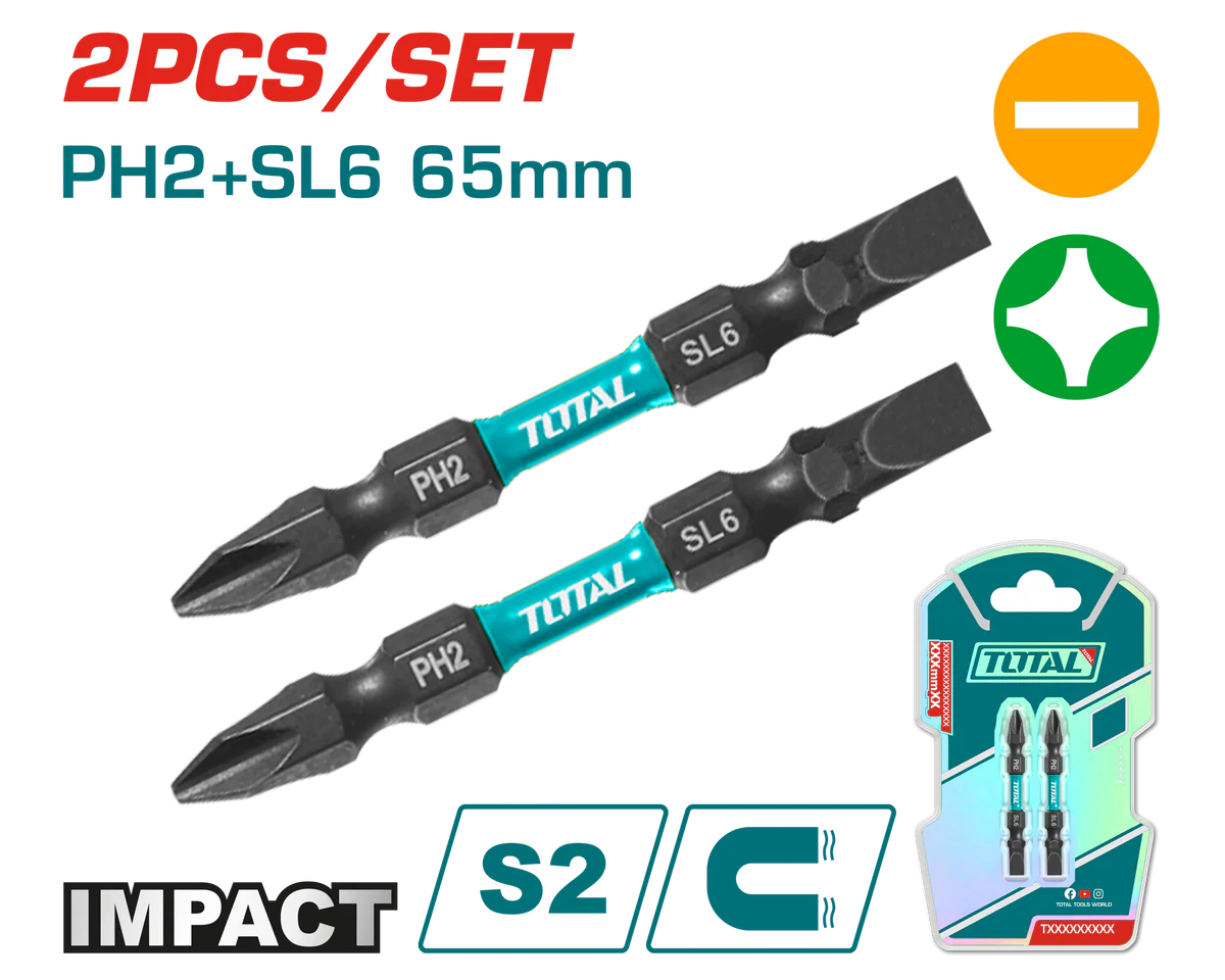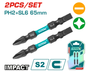 طقم لقم سن مفك عاده و صليبه تصادميه 2 قطعه 65 مم توتال TACIM72HL665