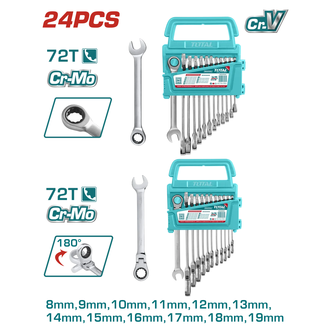 طقم مفتاح سيستيم راتشه 24 قطعه 12 متحرك + 12 ثابت توتال THT103RK246