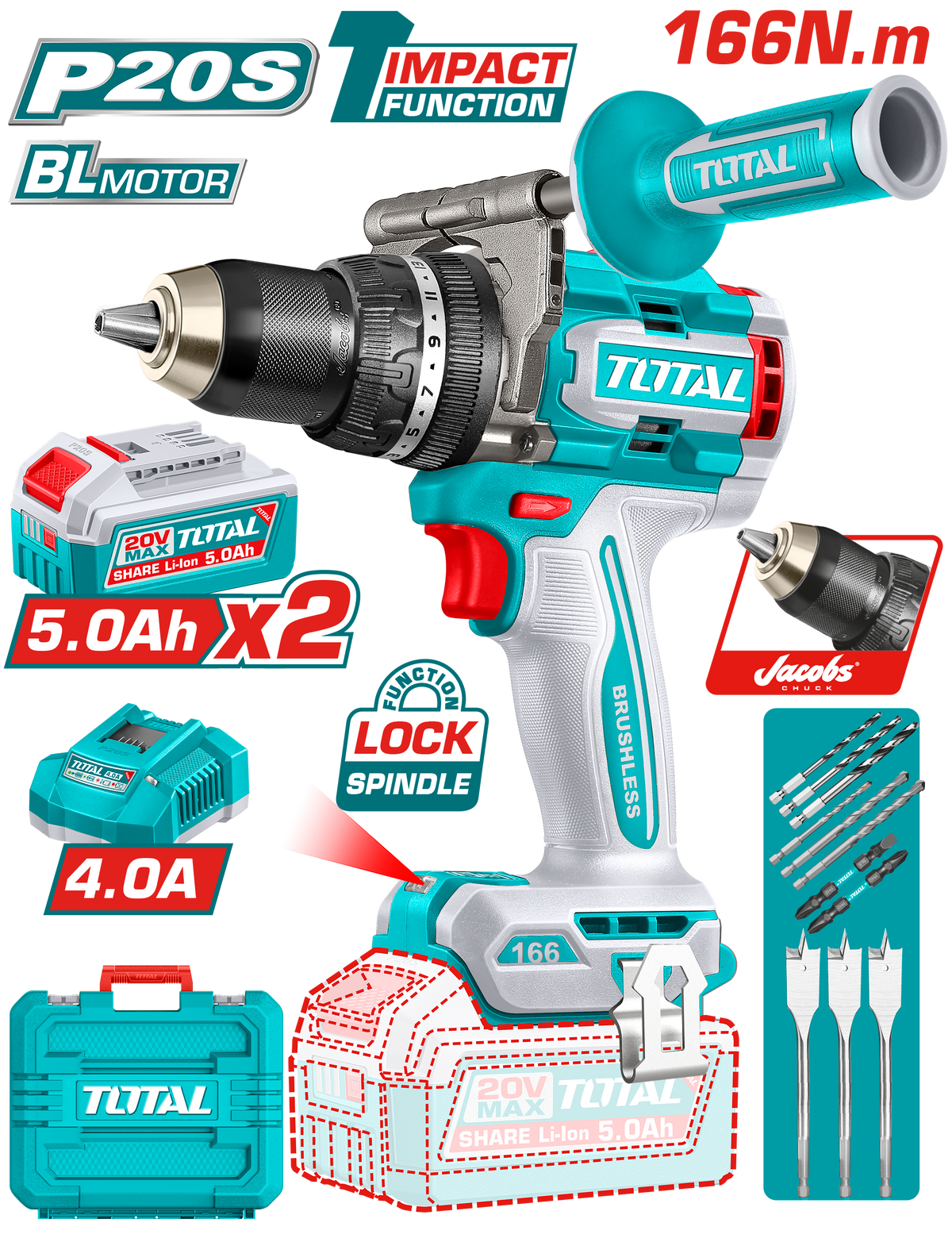 20V 166N Hammer Drill with 2 x 5Ah Batteries Total TIDLI201668