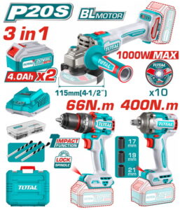Combo Kit Drill Impact Grinder 20V (TOSLI241291)