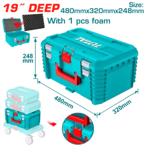 TOTAL TOOLS 19″ Plastic Tool Case, 248 mm Deep, Stackable – Model TPBXS103