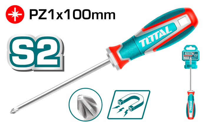 PZ1 Phillips Screwdriver, 100mm Length, S2 Handle, 3 Colors, Total Tools TSDPZ1100