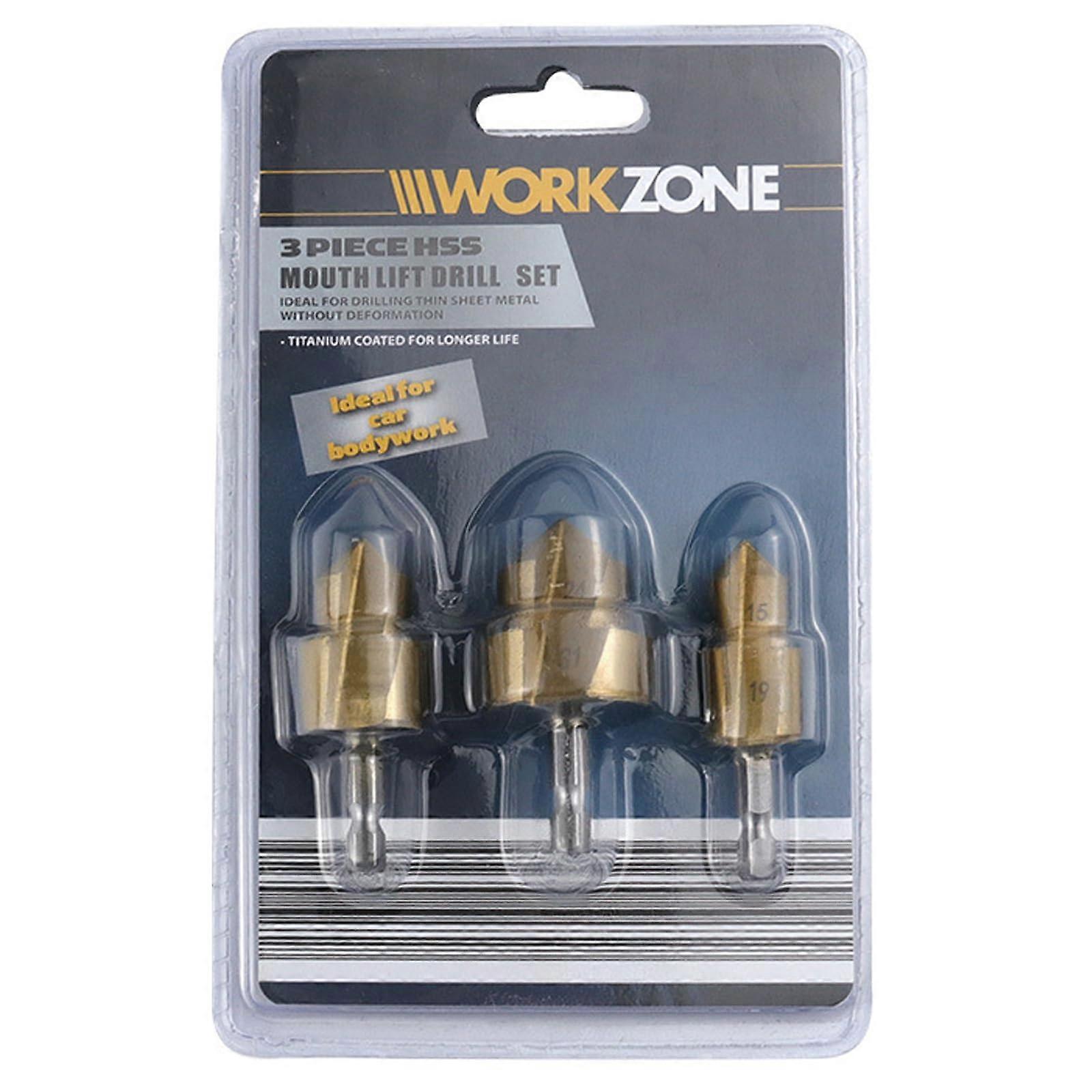 التصميم: ريش مخروطية متدرجة مصممة لثقب المعادن الرقيقة.